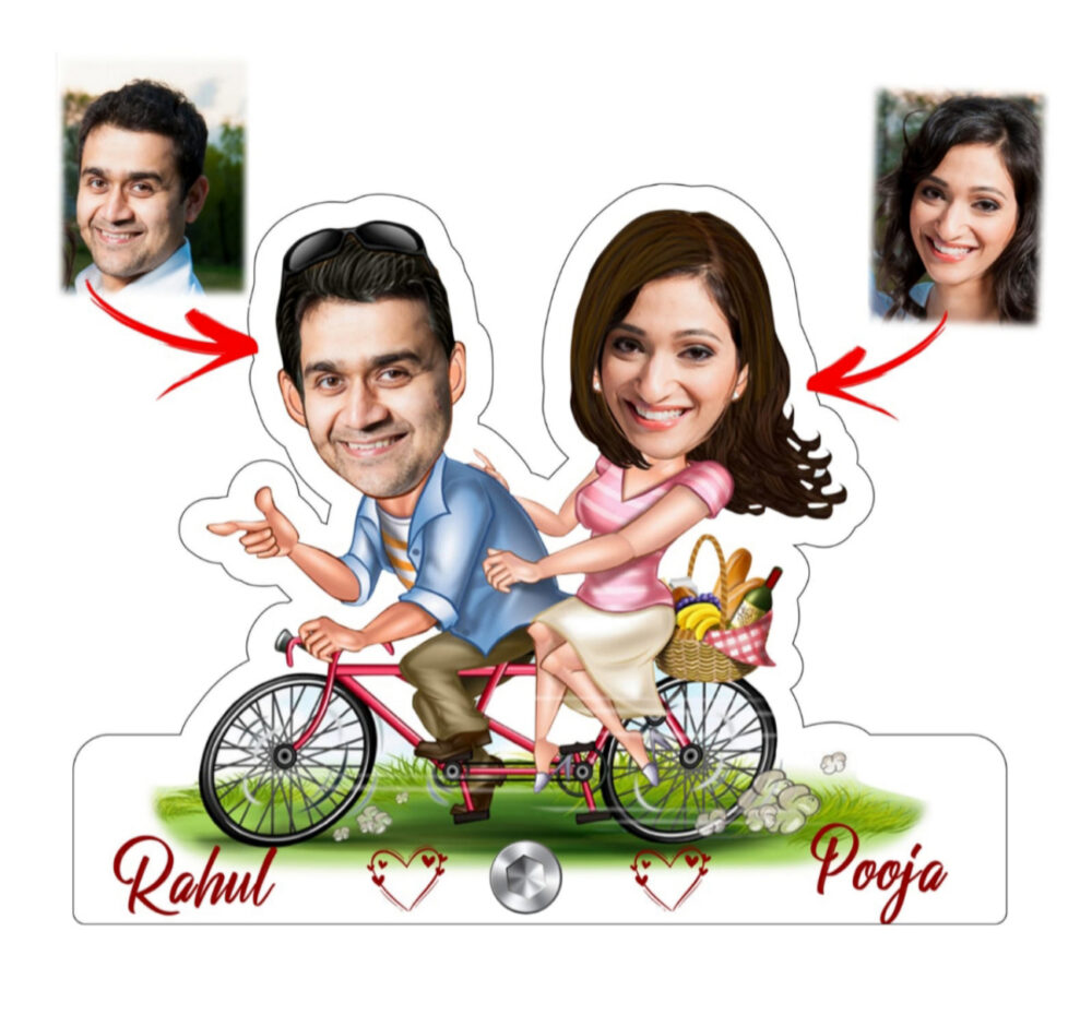 Personalized Family Caricature Standee Gift for Parents With Cycle Ride